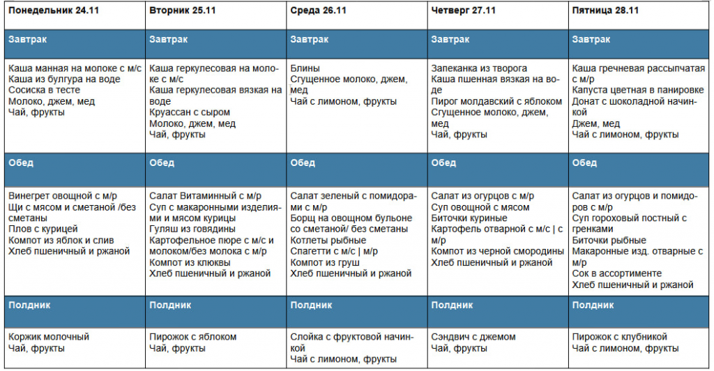 Школьное меню 2024-2025 учебный год